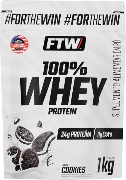 FTW 100% Whey Protein com Proteína Concentrada WPC, para Atletas com Alto Valor Biológico, Suplemento Pós-Treino Sem Glúten – Refil 1kg (Cookies)