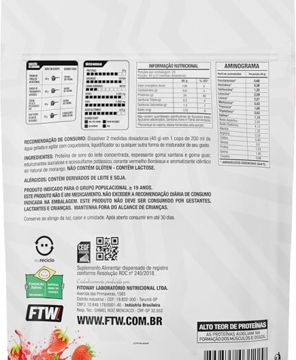 FTW 100% Whey Protein com Proteína Concentrada WPC, para Atletas com Alto Valor Biológico, Suplemento Pós-Treino Sem Glúten – Refil 1kg (Baunilha)