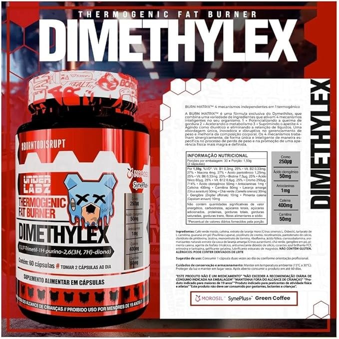 Dimethylex (60 capsulas – 30 Doses) Termogênico – Under Labz | Acelera o Metabolismo, Energia Prolongada, Foco – Fórmula Premium | Treinos intensos | Tecnologia Burn Matrix