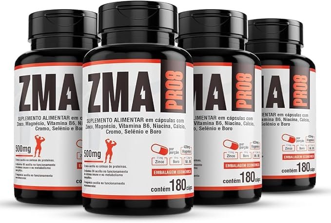 04 (Quatro) Frascos de ZMA Pro8 em frasco econômico com 180 cápsulas.