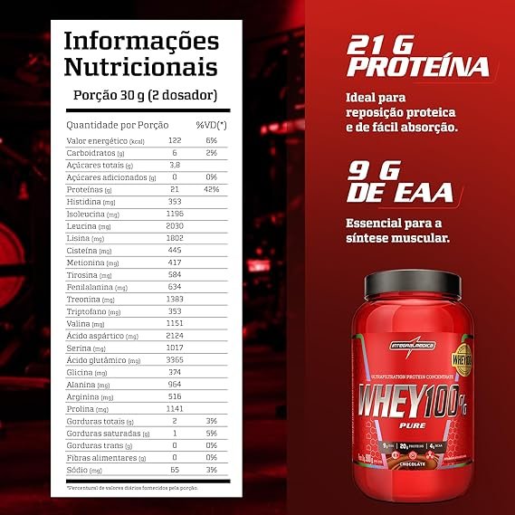 - 【POTÊNCIA MUSCULAR NA MEDIDA CERTA】Com 21g de proteína isolada por scoop, o Whey 100% Pure é a escolha perfeita para quem quer dar aquele up na massa magra. Rápido na absorção, ele acelera a recuperação e garante que você aproveite ao máximo cada treino, sem enrolação.