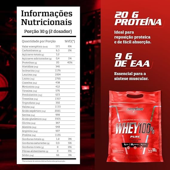 Integralmédica – Whey Protein Concentrado Cookies 100% Pure – 21g de Proteína por Scoop, Suplementação Alimentar Pós-Treino, Fórmula Enriquecida com BCAAs – Pouch 1,8kg