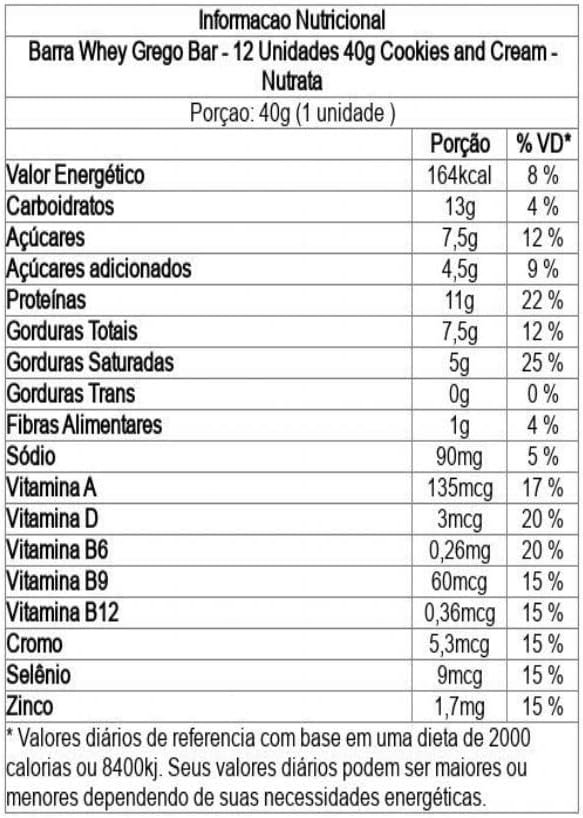 NUTRATA WHEY GREGO 40G DISPLAY C/ 12 BARRAS – COOKIES & CREAM