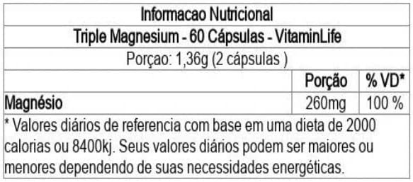 Vitaminlife Triple Magnesium 260Mg (Malato + Taurato + Bisglicinato) 60 Cáps
