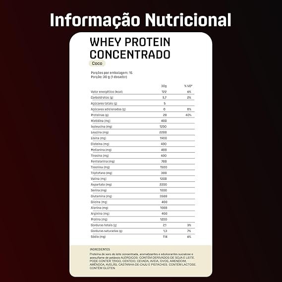 O Whey Protein Concentrado Dux Nutriton é composto por proteínas de alto valor biológico e rápida absorção, além de gorduras essenciais, carboidratos e uma ampla gama de aminoácidos, fundamentais para garantir a síntese muscular acelerada após a prática de esportes. É ideal para ser consumido antes e depois de treinos, mas também pode fazer parte do café da manhã ou servir como um lanche entre as refeições, e em outros momentos conforme a orientação do seu nutricionista. Se há um nutriente indispensável, é a proteína. Ela é feita de aminoácidos, que são os blocos de construção do nosso corpo. A proteína do soro do leite, em inglês “Whey Protein”, é uma das fontes de aminoácidos de melhor absorção, maior até que o frango ou peixe. Isso torna o Whey uma forma conveniente de ingerir proteína, melhorando a saúde, o bem-estar e os resultados dos treinos. >> CONHEÇA A EDIÇÃO LIMITADA SABORES DE HALLOWEEN Chegaram os sabores mais assombrados do ano, edição limitada de Halloween! São três sabores assustadoramente saborosos do Whey Protein Concentrado (450g) inspirados no clima de Halloween: Pirulito de Cereja, Doce de Abóbora e Manga Apimentada. Além disso, cada embalagem vem com um rótulo especial que brilha no escuro. Garanta o seu antes que desapareça! BENEFÍCIOS: > Não contém goma xantana, complexos vitamínicos à base de maltodextrina, espessantes, estabilizantes, conservantes ou qualquer outro ingrediente inferior; > Contém corantes 100% naturais, sem ingredientes artificiais; > O nome diz tudo: Whey Protein Concentrado 100% puro, com transparência total, do nome do produto à lista de ingredientes; > Matéria-prima premium importada, com alto teor de leucina, desenvolvida para criar um produto com sabor real e marcante; > Valores nutricionais robustos, sem excessos, com quantidades ideais de carboidratos e gorduras do leite; > 20g de proteína; > Proteína moderna, desenvolvida por especialistas para atletas de esportes de performance (bodybuilding, crossfit e artes marciais), pessoas que buscam uma proteína com baixa caloria (para snacks fit e receitas sem culpa) e pessoas que buscam uma proteína ultrapura de altíssima qualidade.